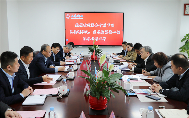 4月6日上午,歷下區委副書記、區長楊福濤一行蒞臨集團調研座談。歷下區委常委、副區長趙冬梅,區政府辦公室主任曹長征,區住房和城市建設局局長王鑫;甸柳街道黨工委書記周海霞、辦事處主任胡軍;歷下控股集團黨委書記荊向東;歷下城發集團董事長、總經理趙玉春;山東建工集團黨委書記、董事長王彥宏,黨委副書記張方明,副董事長李繼念,副董事長師厚紀,總會計師郭洪濤,副總經理、安全總監蘇世凱,市場部副總經理姜志威,辦公室主任張文廣出席座談會。