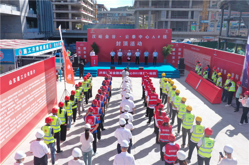 8月23日上午9時,集團承建的漢峪金谷·云泰中心A#樓喜封金頂。濟南高新智慧谷投資置業有限公司董事長兼總經理常艷麗;濟南高新智慧谷投資置業有限公司副總經理、濟南東禾置業有限公司總經理駱虎;濟南高新智慧谷投資置業有限公司投拓總監費世俊;營特國際工程咨詢集團有限公司副總經理金永滿;山東建工集團副董事長師厚紀;山東建工集團副總經理、安全總監蘇世凱等領導出席儀式,與項目建設者一同見證這激動人心的時刻。