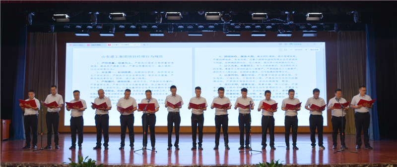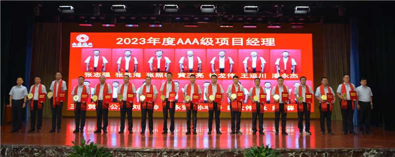 會議第二階段是表彰儀式,集團(tuán)副董事長師厚紀(jì)宣讀表彰決定,集團(tuán)領(lǐng)導(dǎo)分別為AAA級項(xiàng)目經(jīng)理部、AAA級項(xiàng)目經(jīng)理頒獎。AAA級項(xiàng)目經(jīng)理集體誦讀《集團(tuán)項(xiàng)目經(jīng)理行為規(guī)范》。
